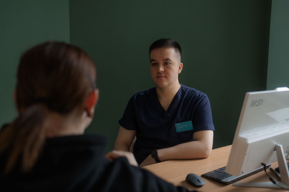 На первом этапе консультации врач опрашивает и осматривает человека. На втором — подробно рассказывает о том, какой диагноз и почему он установил, и какое эффективное лечение возможно.